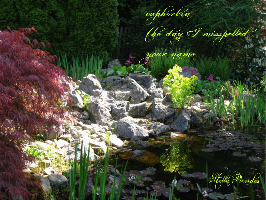 aros, Blog, Haiku, NaHaiWriMo ‘euphorbia’ #16 May 2013 May 16, 2013 Stella Pierides euphorbia the day I misspelled your name… . NaHaiWriMo prompt: pet Discover more from Stella Pierides Subscribe to get the latest posts sent to your email. Type your email… Subscribe Share this: Click to share on X (Opens in new window) X Click to share on Pinterest (Opens in new window) Pinterest Click to share on Tumblr (Opens in new window) Tumblr Click to share on Facebook (Opens in new window) Facebook Like Loading... Related