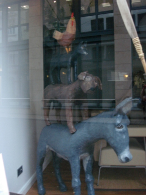 (I took a picture of this sculpture from the street; it is made of papier mache by Gaby Bertram of scrap-pap.de)