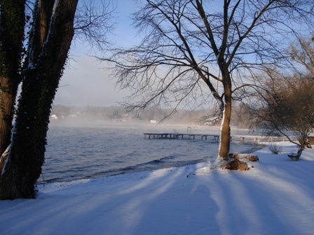 The lake Ammersee puts in a pre-Christmas snow show; steam included!